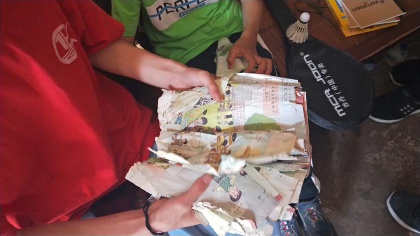 杨亮的奶奶很热情地把同学们迎进了家里,同学们也将给杨亮准备的慰问品拿了出来。当杨亮看到同学们手里的本子和画笔时,他的眼里明显透露出了渴望。因为智力问题,杨亮只读过一年的书,周围的学校都不愿意接收他,而特殊学校的费用又是他的家庭所不能承担的。