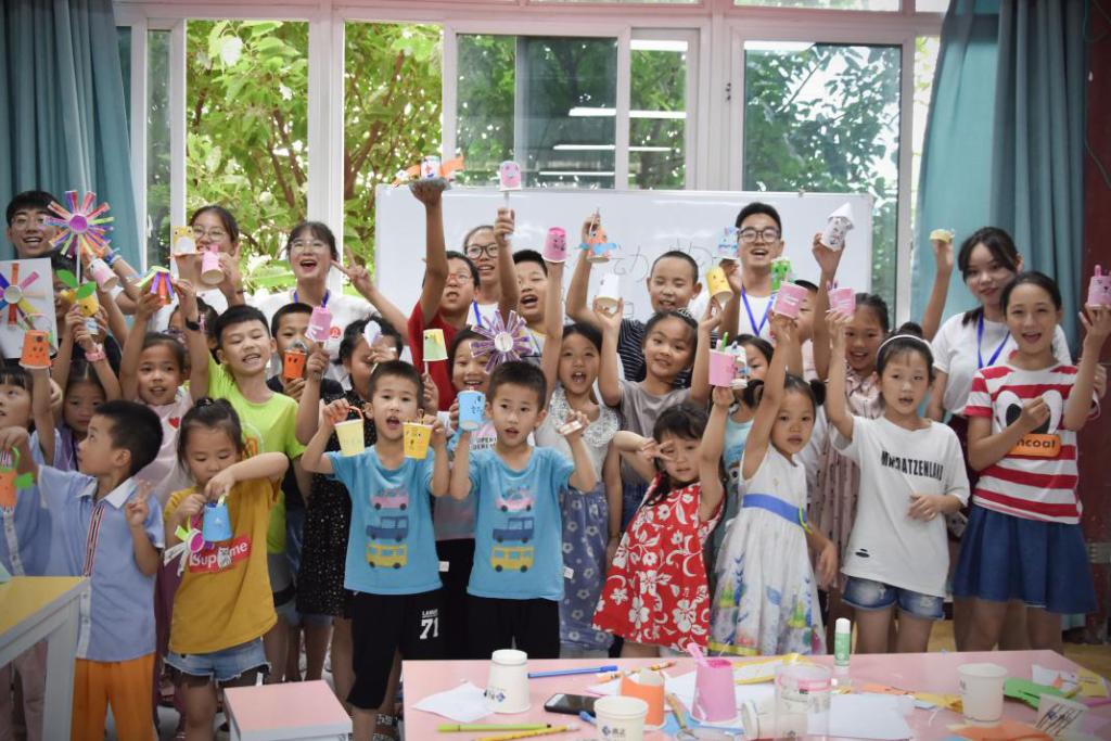 一天的实践活动在孩子们的欢声笑语中圆满结束。一句句生涩的英语,说出的是孩子们勇敢的尝试;一个个彩色的纸杯,展现的是孩子们的奇思妙想;一个个稚嫩的汉字,写出的是孩子们的真心愿望;一幅幅漂亮的图片,绘出的是孩子们的美好蓝图。此次活动的举办,不仅让孩子们在享受快乐的同时学习到知识,增强了动手操作能力和创新意识,还引导孩子们确立“少年强则国强”的信念,让中国梦在孩子心中萌芽。