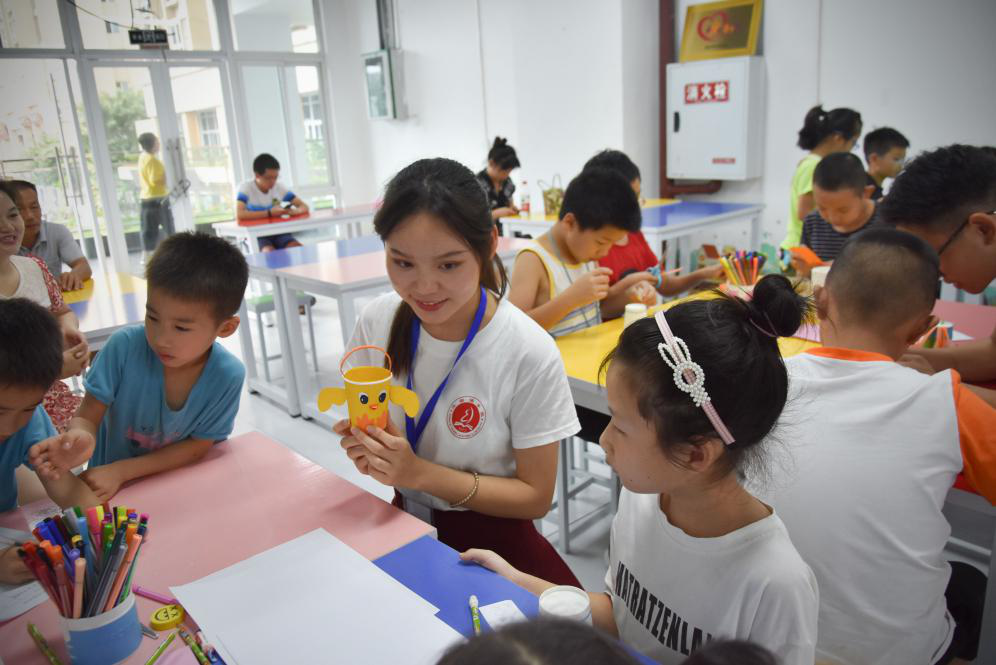 志愿者与孩子们一同进行手工制作(通讯员李骁云摄)