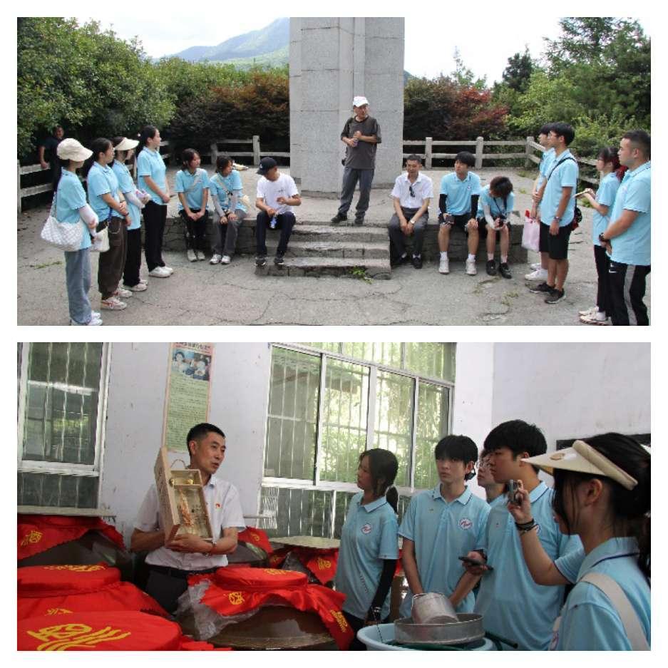 实践团成员在M88驻岔路村第一书记罗世祥、徐家镇岔路村党支部书记薛成喜,徐家镇塘垭村党支部书记易炳明的带领下来到了位于渝、鄂、陕交界处的鸡心岭,参观了古战壕、古盐道等自然景点。同时,徐家镇文化站主任肖治用生动的语言为大家讲述当地红军故事,薛书记向成员们介绍当地白酒生产过程并带大家参观该镇另一红色文化地“一线天炮台”。