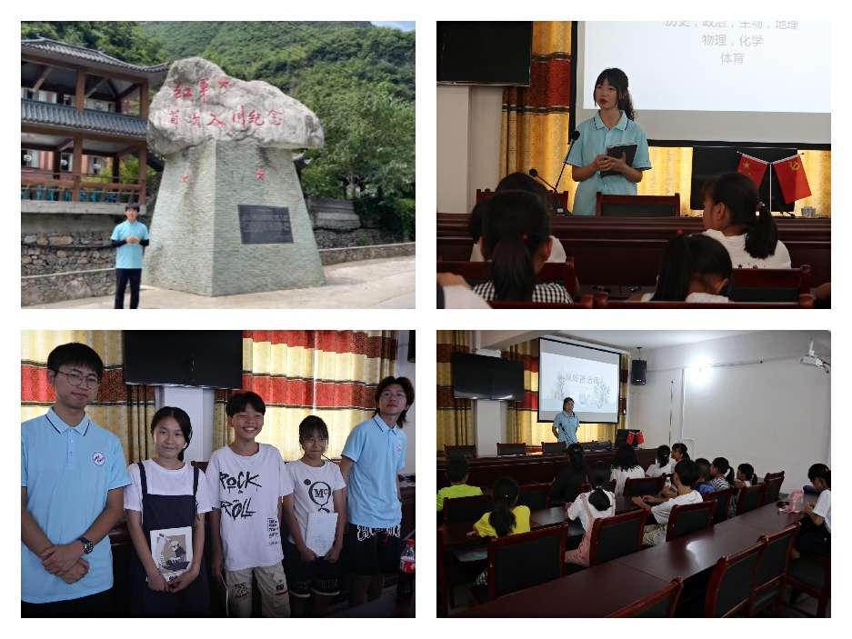 为了更高效率、多方面助推徐家镇乡村振兴,此次红色印“计”实践团分为微课组、授课组和辅导组。微课小组成员前往一线天、七蟒峡等地进行微课拍摄,讲解“红三军智取一线天”、“红三军拿下天险七蟒峡”等历史故事,展现出红军的艰辛与不易,以及缅怀革命先烈、弘扬红色精神的重要性,进一步推广了巫溪县徐家镇当地特色景区,宣传当地红色文化故事。授课小组则在岔路村党群服务中心会议室开展乡村助学活动。围绕梦想、说文解字讲成语、讲好普通话等板块为当地小朋友进行授课,团队成员结合自身成长经历鼓励同学们要更加自信、勇敢。同时在每天授课结束后,辅导小组成员会为同学们辅导功课并答疑解惑。虽然仅有短暂的几天时间,但实践团成员尽己所能、发挥所学,为当地学生提供寓教于乐的教学辅导,引导学生树立正确的学习意识和理想信念。