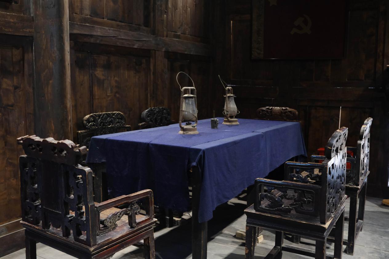 司令部旧址中复原后的桌椅图