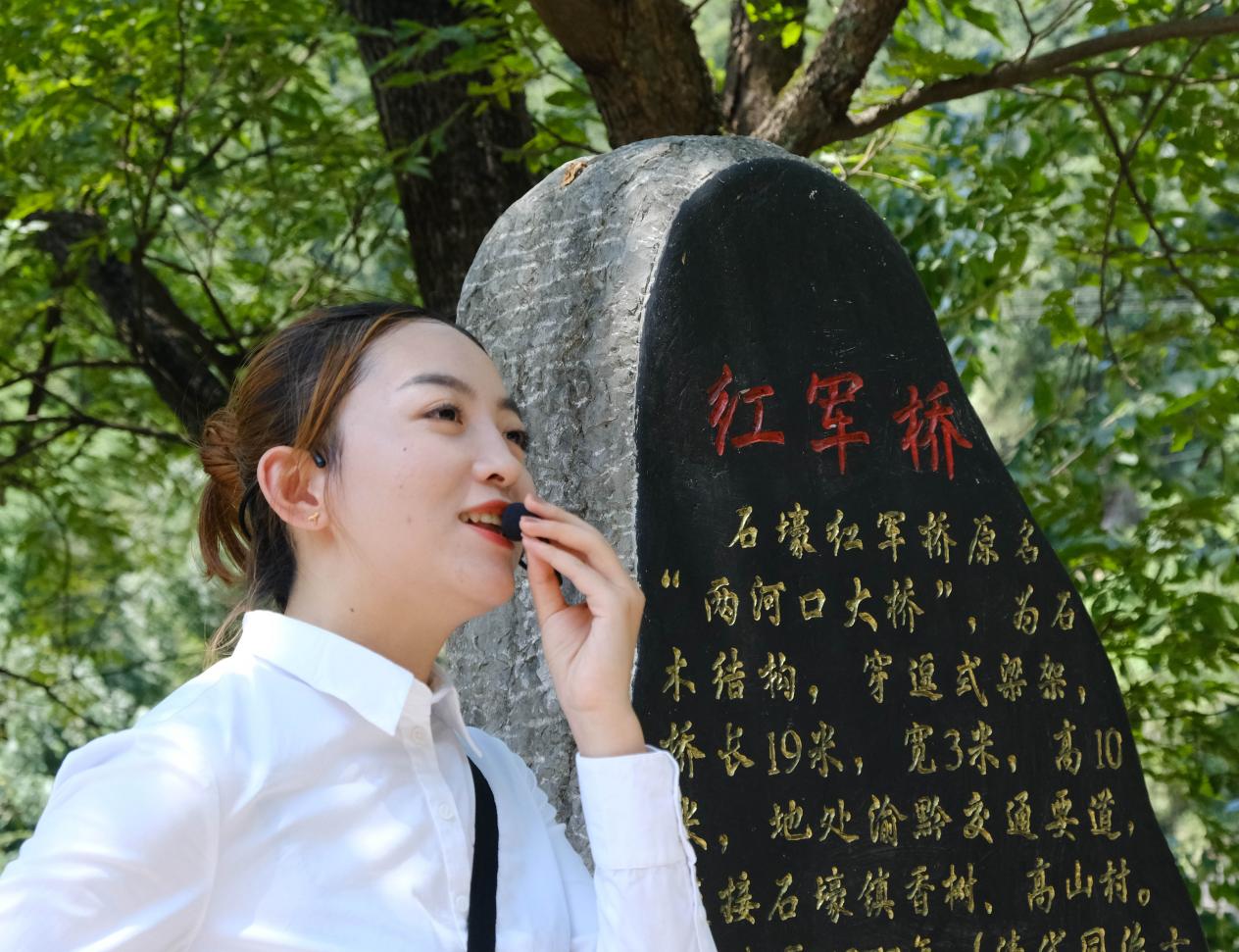 翁讲解员正在讲解红军桥