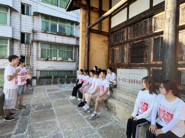 志愿者们在红一军团二团指挥部旧址前合影留念