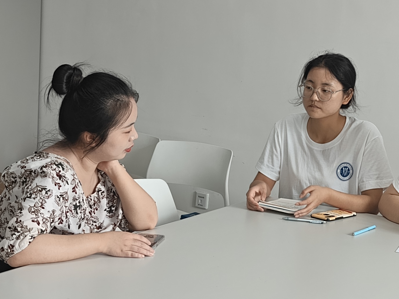 下午4时,第二小队开始对靳超进行采访。靳超校友就考研与就业,学生工作经历以及本科阶段努力为纲要娓娓道来,分享了她在本科阶段的事迹以及面对考研与就业的人生选择时的想法。她认为,良师益友,是本科阶段最大的财富。对于本科阶段的生活,她强调,本科生活极其珍贵,一定要好好珍惜本科时光,实现自己的价值。团队成员意识到,要认真学好专业知识,珍惜大学时光,成为对社会有用的人。
