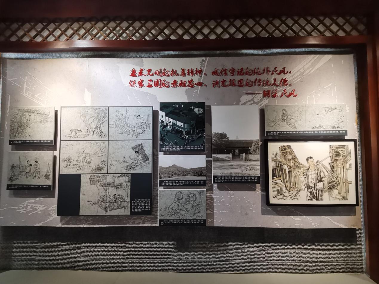 走进邱少云烈士纪念馆后,面对雕塑向左转来到了一楼的第一个房间。房间挨着门的一侧写着辉煌篇章丰碑永存。接着来到了第二个房间,墙上挂满了一幅幅画,它是邱少云烈士生平经历的缩影。