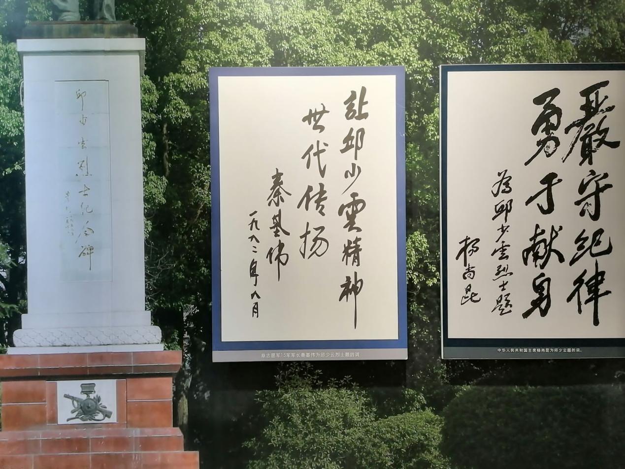 图为纪念碑及缅怀邱少云烈士赠言的图像