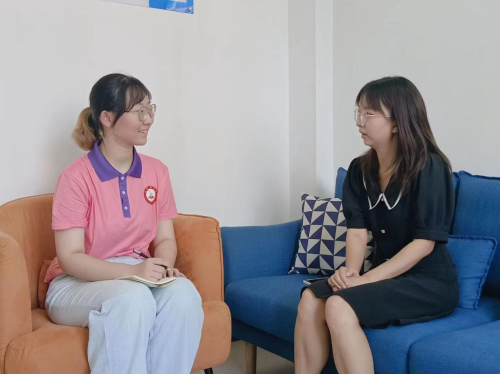 寻访团成员曹文暄提出了自己的疑问:“为什么并未去从事心理咨询师,而是选择了中学心理教师?”叶静雯说出了自己的回答,她认为:“每一个角色有每一个角色的长处,在这里孩子们总是会在不经意间给老师带来惊喜。看到学生们开开心心、健健康康地进出校园,带给心理健康老师的,是一种不一样的成就感。与学生的互相陪伴,是师生之间的共同成长。”