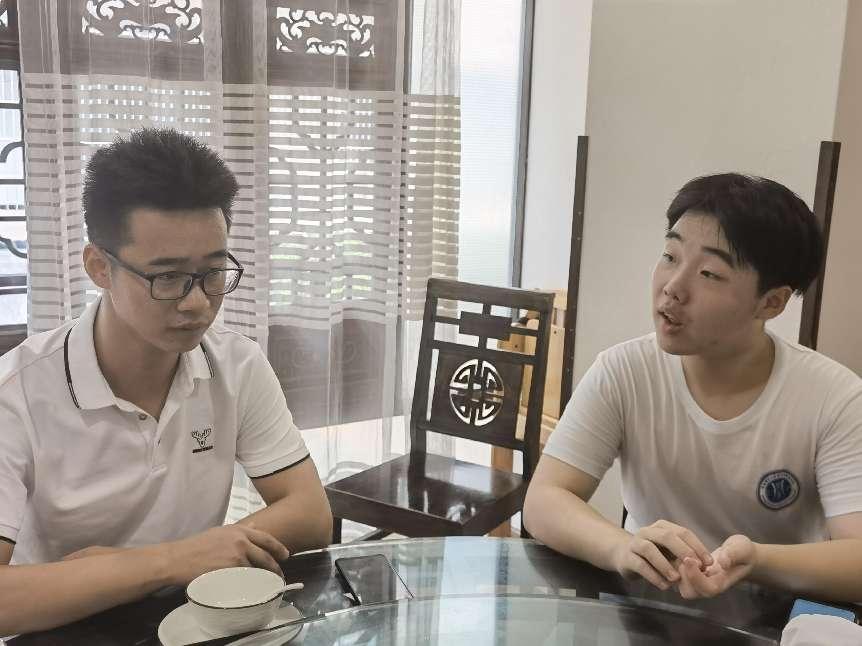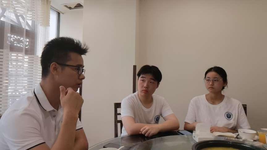 (图为黄令给予学弟学妹一些考研经验)