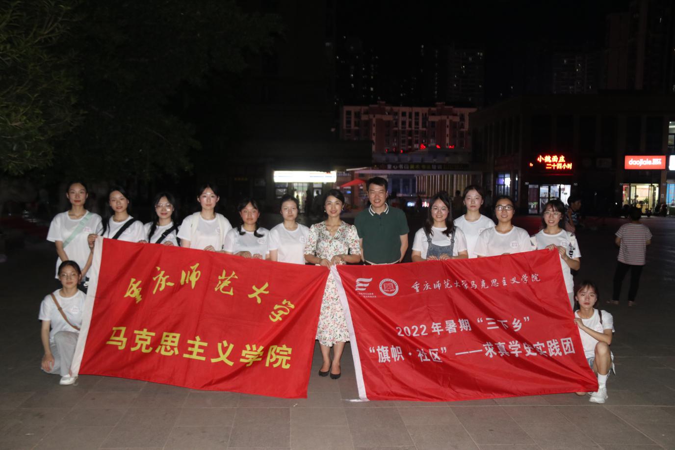 为进一步构建“学校+社区+家庭”三位一体的儿童身心健康教育公共服务体系,丰富儿童的暑期生活,促进和谐社区建设,提高大学生“走近群众、走向基层、走入社区”意识,2022年7月17日,重庆师范大学马克思主义学院“旗帜·社区”—求真学史实践团在马克思主义学院副院长姜土生、团委书记刘洪的带领下赴重庆市九龙坡区华岩新城社区,为当地小朋友举行了一场别开生面的仲夏夜主题志愿活动。
