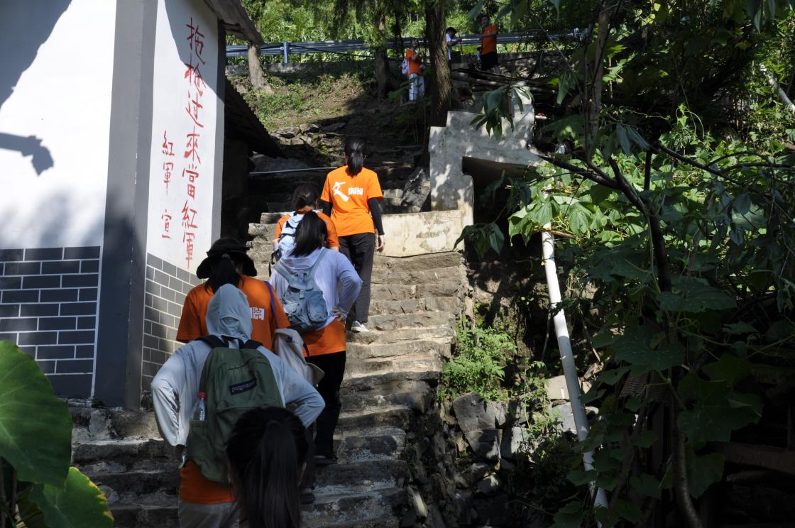 从山脚向上而望,陡峭的石梯曲曲折折地消失在了远处的树林里,望不见尽头的道路是靠着红军一步一步走出来的。“枫香树”实践团成员追随着红军的足迹,溯源而上,去探求红军的长征精神,当地村民告诉队员,当年红军走的山路还比现在看到的还要泥泞崎岖,现在的石板都是后人铺上去的,这样不仅保护了红色文化遗址,也以红色文化带动了当地旅游业的发展。寓教于实践,让后人深刻地体会到万里长征的艰苦环境,继承和发扬红军的自强不息、勇往直前的精神,让红色精神在时代之中彰显出新的生命力,激励着中华儿女努力学习好科学文化知识,在这百年未有之大变局叠加全球疫情时期,为实现中华民族的伟大复兴贡献出自己的力量。
