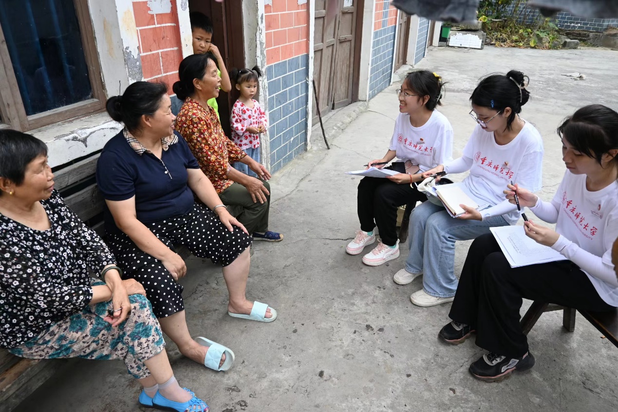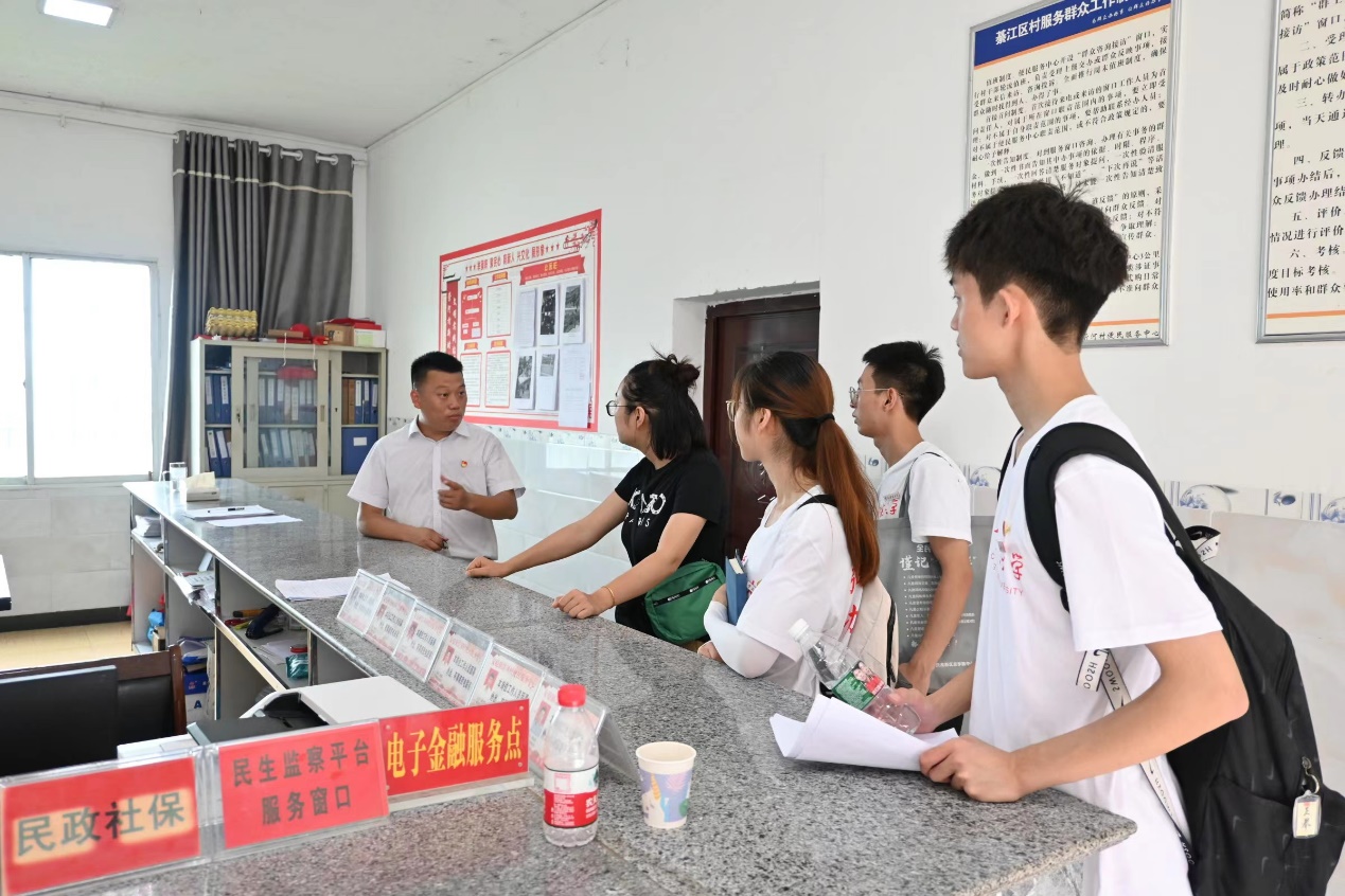 在安稳镇崇河村驻村第一书记黄昌前的带领下,团队成员挨户进行走访调研,通过深入交流和问卷调查的形式了解到崇河村“乡村自然健康屋”和“慈善超市”两项乡村振兴战略特色成果:“乡村自然健康屋”无偿为村民提供健康知识和健康服务,为困难无业者提供自然健康教育、培训等服务,已成为宣传健康知识、乡风文明,树立新风正能量的热点之屋;可用积分兑换实物商品的“慈善超市”有效调动了群众参与农村建设的积极性,推进乡村基层社会治理。
