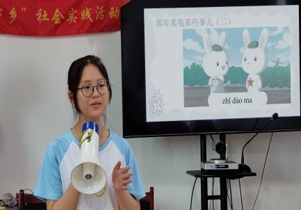 在“红色经典宣讲活动”中服务团结合参与群众的年龄特征,设计了趣味游戏和红色动漫短片观影,服务团以趣味游戏“时刻准备“-萝卜蹲、“排雷行动”—拼音汉字匹配、“抢占先机”—抱抱团等游戏吸引孩子们的兴趣,分享讲解小萝卜头的故事,带领学习孝亲尊师、刻苦学习、坚强乐观、奋发图强、团结协作等优秀品质。红色动画以更符合儿童观众的审美趣味,引领孩子们重温那段艰苦卓绝的历史,感受革命先烈的不朽功勋,进一步激发广大少年儿童爱党爱国热情。团队还以此为契机,带领孩子们学习普通话,增强文化自信。