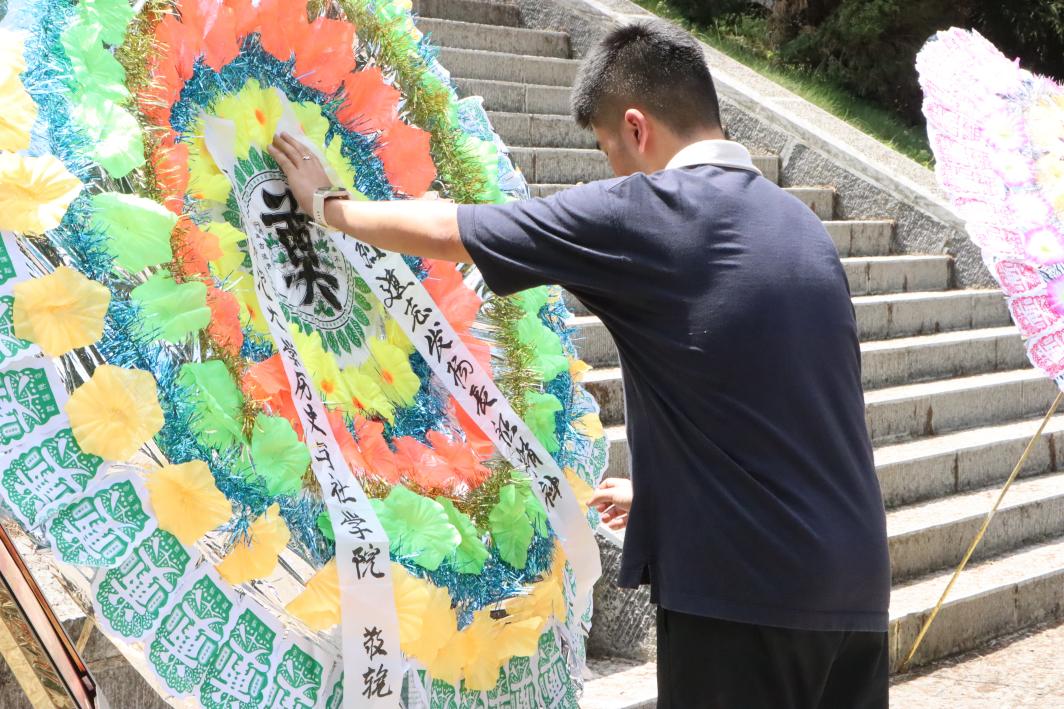炎炎夏日下,解说员哽咽地讲述着为掩护受伤战友突围而被捕,受尽种种酷刑最后壮烈牺牲的司务长的英勇事迹。革命理想高于天,虽然这5名烈士的姓名已无从考证,但他们的浩然之气长存。在工作人员的带领下,“史韵”团队向红军烈士们进献花圈,团队代表整理挽联以表敬意。之后,全体成员在纪念碑前重温入团仪式,重温誓词初心,砥砺青春奋斗。一位团队成员在活动结束后这样说道:“当下,青年应以团结奋斗的精神和不惧苦难的信念走在新的长征路上。”