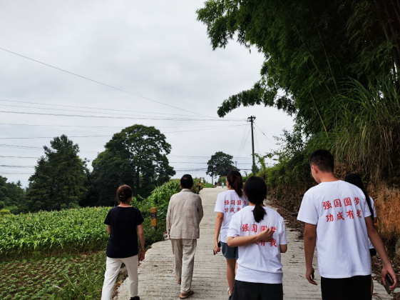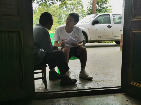 同学正在与村民进行调研 与村民边散步边听前辈讲故事