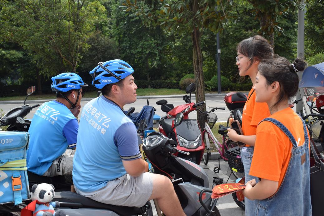 最后,团队成员对驿站内外的群众进行了采访。其中,成员们观察到出入最频繁的是外卖小哥、交通警察与环卫工人们,他们作为基层的劳动者,每日辛勤工作,维护城市的正常运行,是最朴素、最可爱的“城市保卫者”。带着对他们的敬意,众行团成员上前对外卖小哥进行了简单采访。外卖小哥非常赞赏“暖心驿站”的设立,并表示要发扬“我为人人,人人为我”的主人公精神,在享受党和国家为广大劳动者提供的便利的同时,也要为社会做力所能及的事。