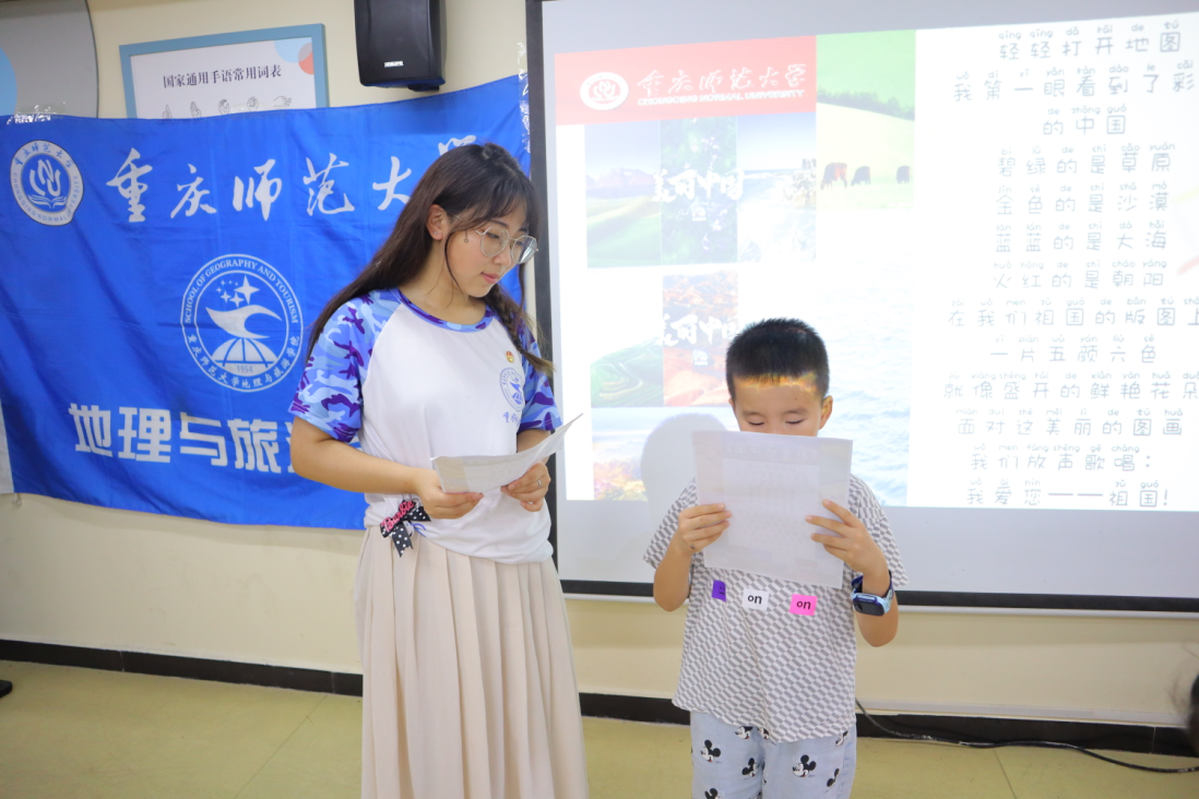 (图为志愿者姚雨婷给小朋友上口才特色课。冉镇豪 供图)
