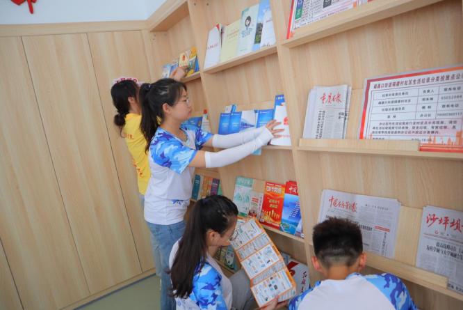 (图为志愿帮忙整理科普书籍和读物。 姚雨婷 供图)