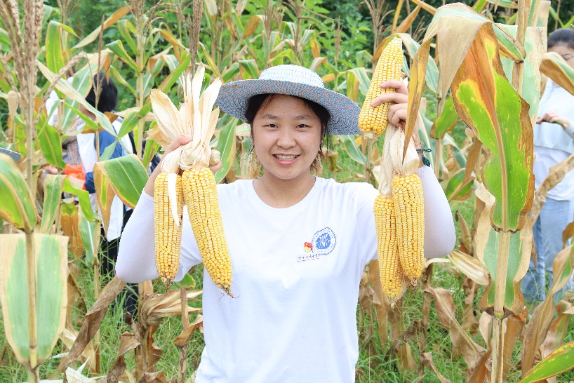 泥地上,少云村综治专干周登礼边示范、边讲解,精准传授玉米采摘、藤椒除草等技巧,实践团成员们有序地穿梭在玉米地中、藤椒树下,活学活用,干劲十足,面对一个个饱满的玉米,她们撸起袖子弯下腰,在杂草丛生的玉米地中收获果实。雨水冲洗后的藤椒地泥泞不堪,泥巴裹满了裤腿,汗水湿透了衣背。