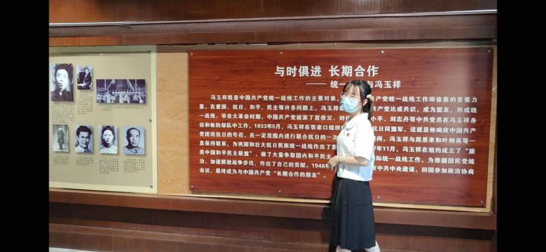 冯玉祥将军是一位爱国将领,有“民国吕布”之称。小队成员们一起参观冯玉祥将军旧居从冯将军居住的房子所使用的物品以及他写给方面的信件,感受到了冯玉祥将军是一位爱国爱人民的将军在拒蒋廊,成员们了解了冯玉祥将军是如何弃暗投明制动与国民党反动派划清界限,积极投入共产党的组织和建设的事迹。在旧居,成员们看到了冯玉祥将军的生活场景认识到了冯玉祥将军的勤奋严谨以及朴实在长达一生的工作中,不计个人得失,只求为国为民和积极抗日。
