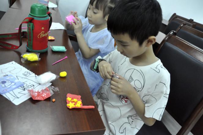 之后,便进入了本次课堂的重点,介绍中国泥塑的代表人物“泥人张”。许朦朦同学带领小朋友们欣赏了诸多精妙绝伦的优秀传统泥塑作品。到动手环节时则由同学们发挥想象力和创造力,自由创作粘土作品,亲身体验手工艺术乐趣。小朋友们在做粘土的时候专心致志,不亦乐乎,并由衷地喜爱自己的粘土作品,为自己制作的粘土作品感到自豪。课堂氛围整体轻松惬意。
