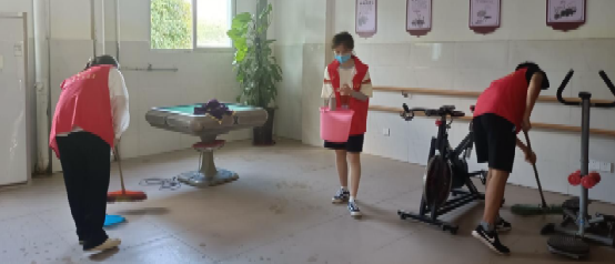 (图为实践团成员打扫养老院)