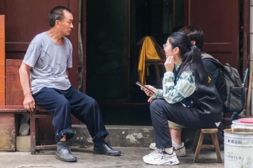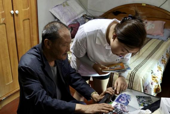 74岁的雷昌易老人是团队所走访的第一位老人,16岁受伤后便行动不便,不久前和66岁的妻子文明连发生了车祸。他的两个女儿分别定居江苏和广东,通常只有过年才会回家看望他们。一看见“超广角”团队到来,他急忙从轮椅上站起来,挥挥手招呼大家进门。团队成员扶着雷昌易老人走进大门,便看见躺在大厅左侧床上休息的文明连老人。两位老人挪了挪大厅的凳子,热情地欢迎团队坐下。由于两位老人受伤行动不便,家里已经很久没有好好收拾了,“超广角”团队立马给老人家里打扫卫生、叠衣服、倒垃圾。