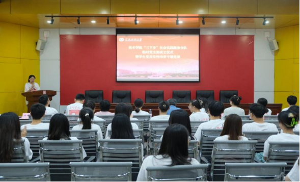 为响应学校在全校大学生中组织开展暑期“三下乡”社会实践活动的号召。2023年6月27日晚7时,美术学院于花马大讲堂举办“三下乡”社会实践服务分队“党旗飘扬”临时党支部成立仪式暨学生党员党性修养专题党课。