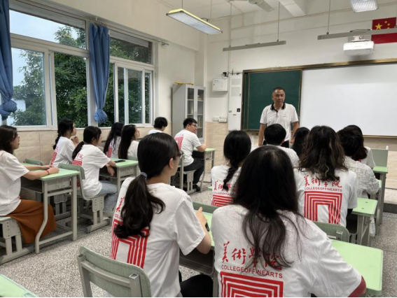 随后,附二小龙兴校区负责人王建老师对参与此次美育实践活动的小学生和大学生提出了希望和嘱托,希望青年学子能够用心用情的对待为期5天的课程教学,让村小的孩子们获得更多学习美、欣赏美、创造美的能力,也希望附二小的孩子们珍惜学习机会,在大学生哥哥姐姐的带领下拓展视野、美化心灵。