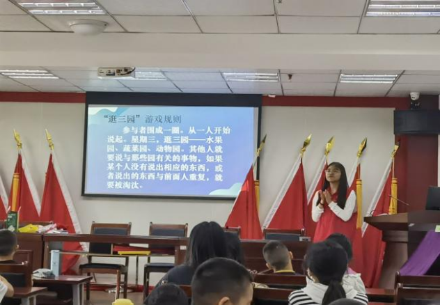 游戏环节,志愿者们再主持人的号召下,带领小朋友们玩起了“逛三园”的小游戏,小朋友们分成三组围成小圈,游戏考验小朋友们的思维敏捷能力,大家笑着跳着,在游戏中也学到了不少知识。