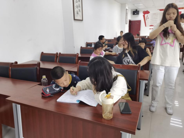 最后,主持人宣布进入学习环节,小朋友们瞬间安静下来,拿起作业本在志愿者的辅导下认真写起来作业。四十分钟过去后,活动结束,志愿者同小朋友们一起合影留恋。