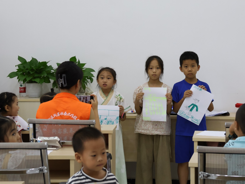 活动进行到最后,实践队志愿者引导小朋友绘画未来职业自画像。小朋友们畅想了未来自己是什么样的,在纸上绘画出各种不同职业形象。有当绘画家的小朋友、有想当军人,保卫国家的小朋友、还有想当航天员的小朋友。一天的趣味课堂学习,小朋友们无论是对优秀人物袁隆平院士的敬意,还是对科技发展成就的惊叹,情绪都达到了顶峰。是成为像袁隆平爷爷一样的“时代楷模”,还是成为推动科技发展的科学家,亦或是探究神秘外太空的宇航员?无论他们的梦想是什么,作为祖国未来花朵的他们,终将会成为未来祖国的建设者、未来时代的引领者。