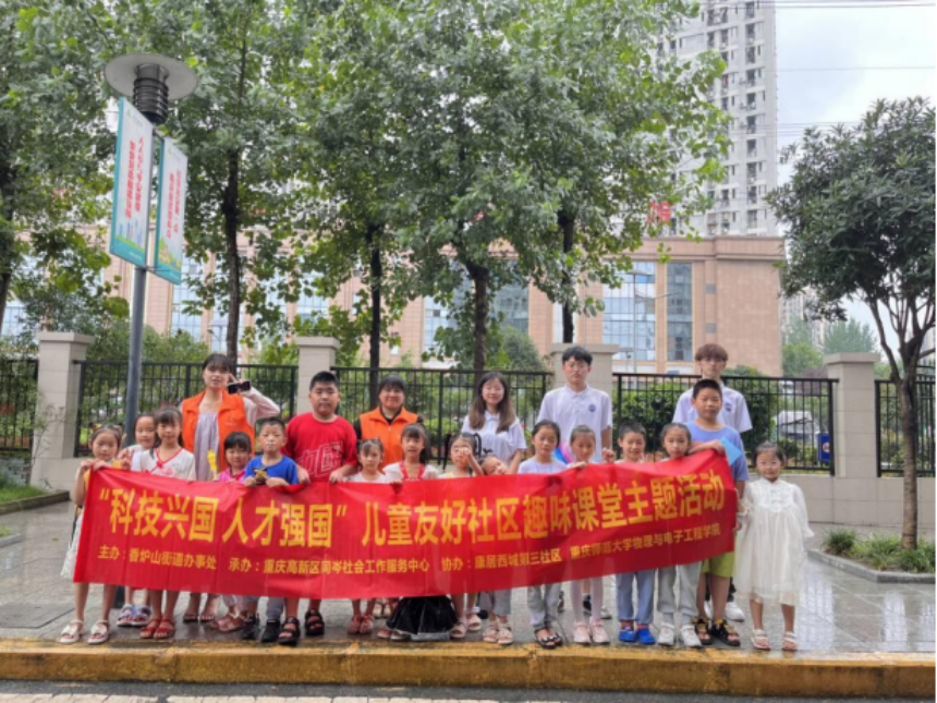 2023年7月1号,为进一步落实人才强国战略,M88物理与电子工程学院“晨旭繁星”实践小队来到沙坪坝区康居西城,在社区工作人员协助下组织开展了“科技强国 人才兴国”儿童友好社区趣味课堂主题活动。