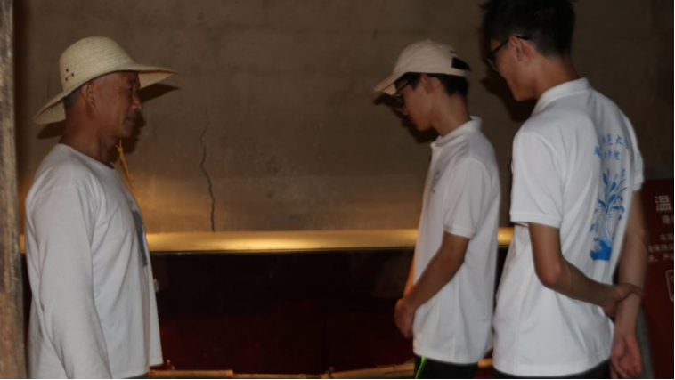 图为热心村民为实践团讲解陈列馆历史