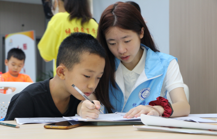活动的第一步是“帮扶小课堂”,团队成员从基础知识入手,在帮助孩子们完成日常作业的同时,开展了,带领孩子们复习已学知识点,并预习即将学习的科目知识,同时培养了孩子们的自学能力。