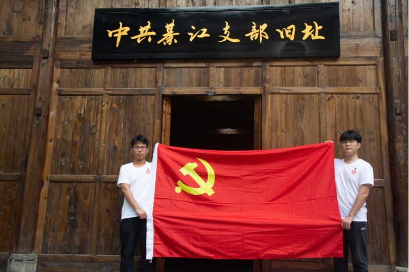上午10点,服务团到达第一站——中共綦江支部旧址。1926年1月24日,中共綦江支部正式成立,这是重庆有确切记载的最早党支部,也是整个四川最早的三个党组织之一。通过参观中共綦江支部成立的历史背景、发展历程等红色历史,同学们深受感动与震撼,对“建党精神”有了更加深刻的领悟,深切体会到革命先烈不怕牺牲的顽强意志和对党忠诚的坚定信仰。服务团的党员同志重温入党誓词、团员同学重温入团誓词。铿锵恢宏的誓词,强烈震撼着在场的每一位同学。一字一句,神圣而豪迈,铮铮誓言,体现了同学们对中国共产党的无限忠诚。