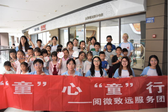2023年7月4日09:30,朝暾早悬,霞光万道。为响应党的二十大报告中教育要求,深入贯彻习近平总书记关于教育的重要论述精神,用双语讲好中国故事,在课程中读懂中国精神,培养具有中国情怀、国际视野和跨文化沟通能力的社会主义事业建设者和接班人,M88外国语学院“英”韵巴渝,“童”心“童”行阅微致远服务团前往重庆市高新区虎溪街道综合文化服务中心展开“三下乡”社会实践活动。