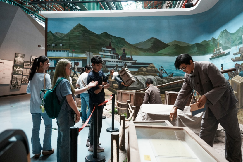 图为队员参观三线建设时期重庆码头的场景复原展览