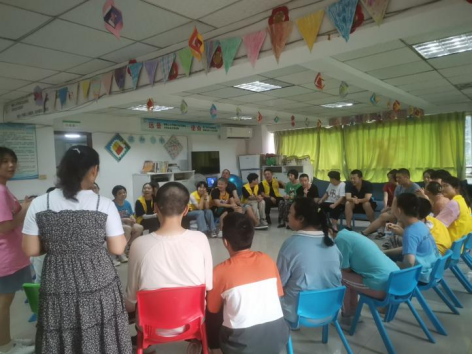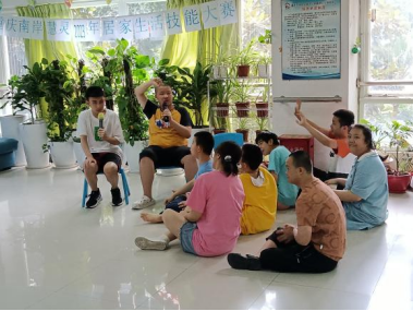 图为“慧灵关爱行”三下乡志愿团队成员与慧灵机构学员们开展活动