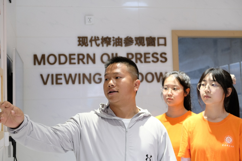 在聆听党史故事,感受红色精神后,下午16时,杨云林书记带领实践团成员深入羊古缭油坊。实践团成员通过了解和体验菜籽油压榨过程,探寻一朵油菜花背后的致富精神。