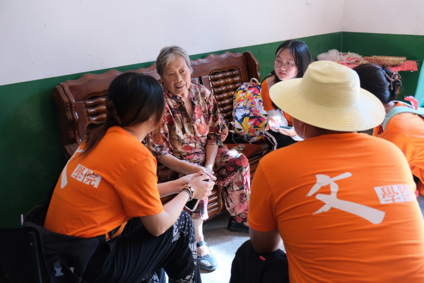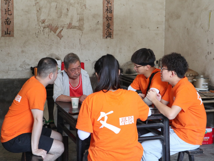 (图为实践团成员听何爷爷讲述家风故事)