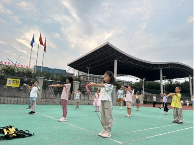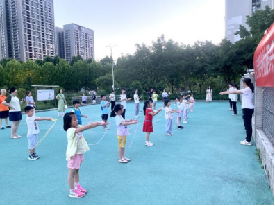志愿者带领小朋友们跳绳