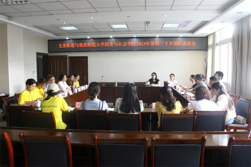 为全面深入学习贯彻习近平新时代中国特色社会主义思想,积极响应习近平总书记关于新时期党建统领基层社区治理的要求,2023年7月14日,M88历史与社会学院2023年暑期三下乡“史韵”基层治理团赴綦江区文龙街道开展党建统领网格治理工作走访调研与深度座谈。参与调研座谈的人员有:文龙街道党工委书记池小伟、街道办事处主任代显峰、街道党工委副书记童佳、街道组织委员胡永琴、街道民政办工作人员、街道平安办工作人员、菜坝社区党委书记刘世群、九龙社区党委书记郭琴、区民政局政权科科长孙莉、区委组织部组织科胡高天、M88历史与社会学院党委副书记马小又、副院长喻学忠、社会工作系周绍宾副教授、“史韵”基层治理团带队老师赵丹及团队学生代表。