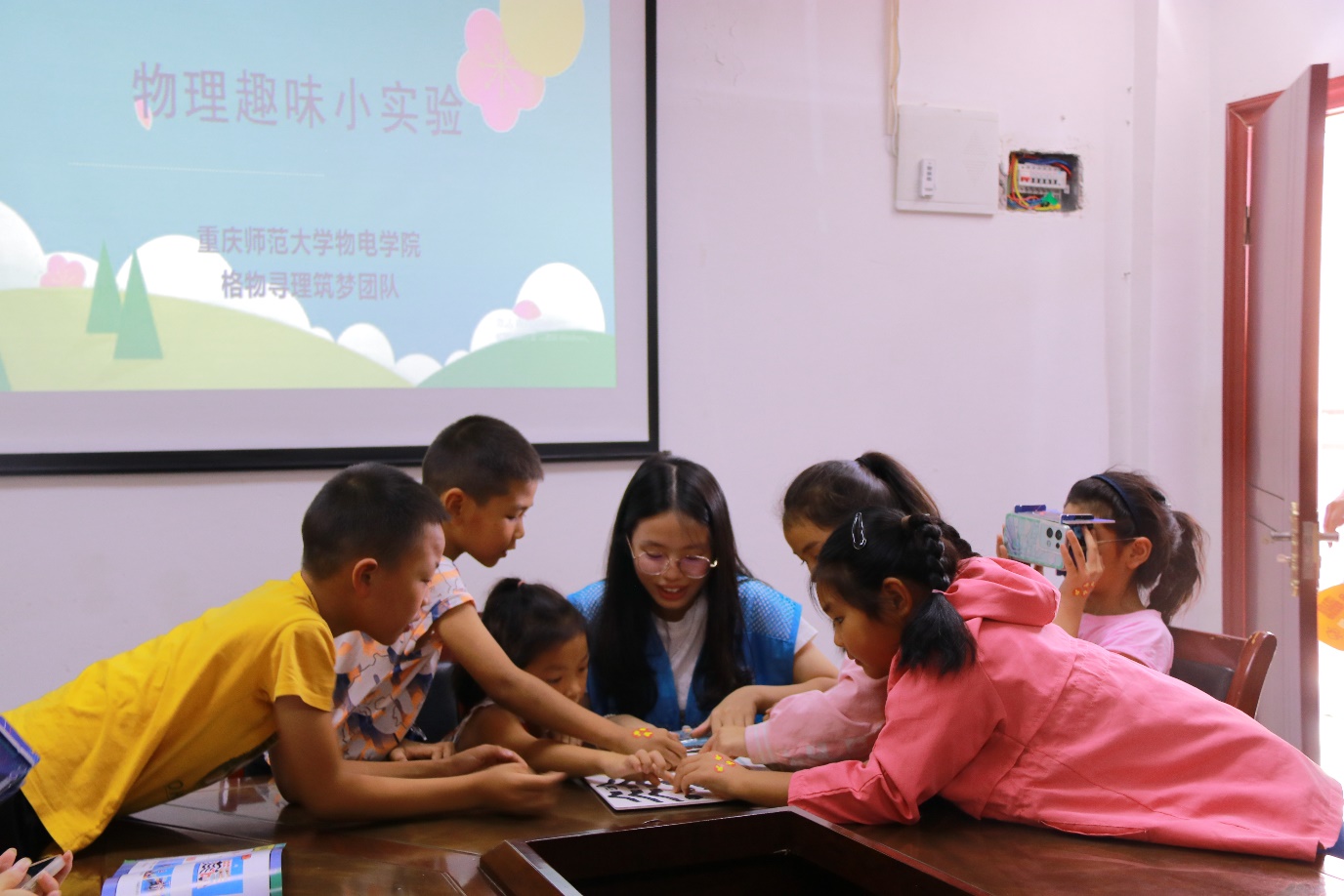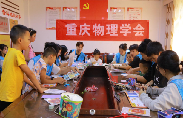 7月15日,为培养孩子们良好的创新精神,拓宽视野,提高科学素养,在重庆市物理学会指导下,物理与电子工程学院“格物寻理筑梦团”实践队立足学科特色,突出学科特点,以“科学大碰撞”物理文化交流日的形式在綦江区石壕镇万隆村面向全村小学生开展趣味科普课堂。