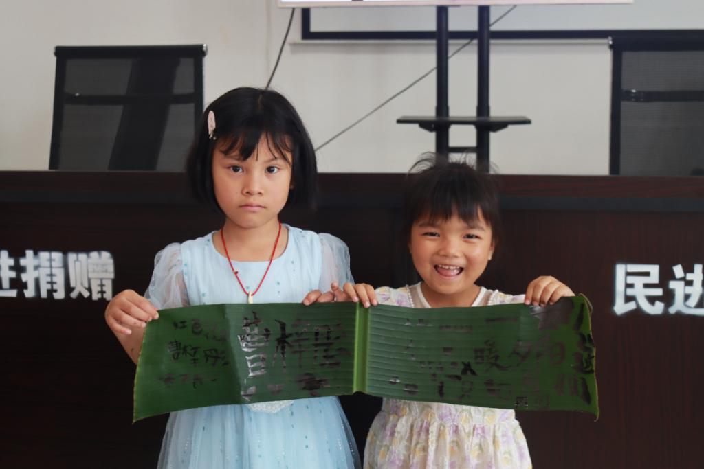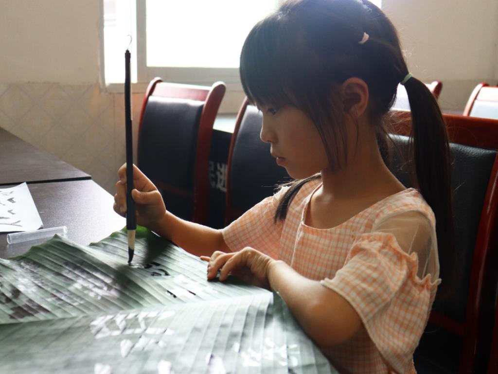 “今天知道了书法是传统文化的一种,还写了‘红军不怕远征难’。”孩子们用稚嫩的手握着毛笔写的格外认真,一句句红色诗词不仅在蕉叶上落下了笔墨,也在他们心里留下了痕迹。
