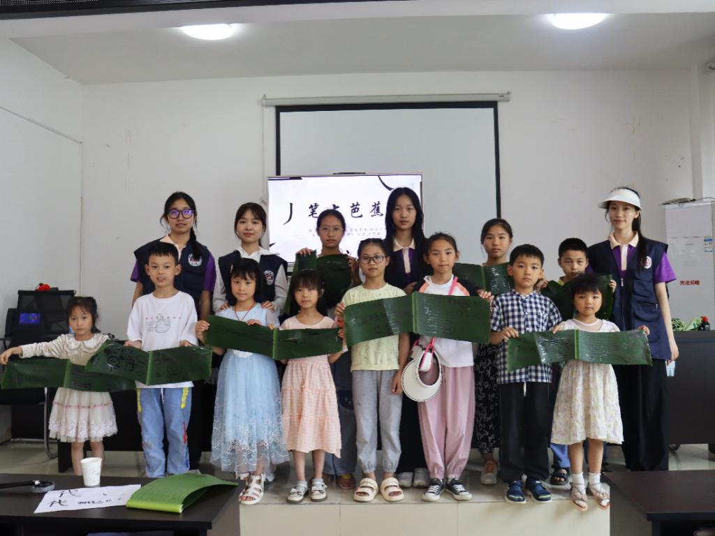 “看着孩子们写的那么认真,还一直在问书法本身和红色诗词相关的内容,我对于文化传承的重要性也有了新的体会,也很开心能把传统文化和革命精神传承下去。”在活动过程中,大学生志愿者们将伟大革命精神与中华优秀传统文化相结合,通过“蕉叶题诗”的形式将这种精神与文化传承给羊角村的孩子们,他们自身对于红色故事的理解更加深刻,也坚定了文化自信。
