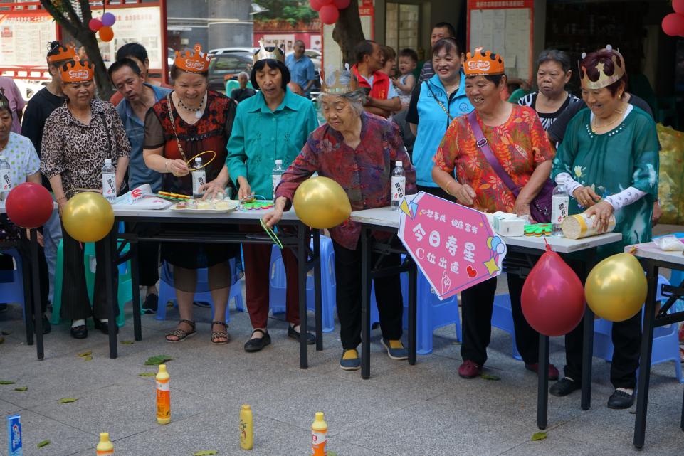 团队成员们还精心演绎了情景剧《金色的鱼钩》、舞蹈《小城夏天》等节目,将氛围推向最高潮,社区老人们跟随节奏打拍,热闹非凡,融洽友爱。随后志愿者们还设置了“套圈”游戏,为爷爷奶奶们准备了各种实用的生活物资作为奖品,老人们脸上无不洋溢着幸福的笑容。