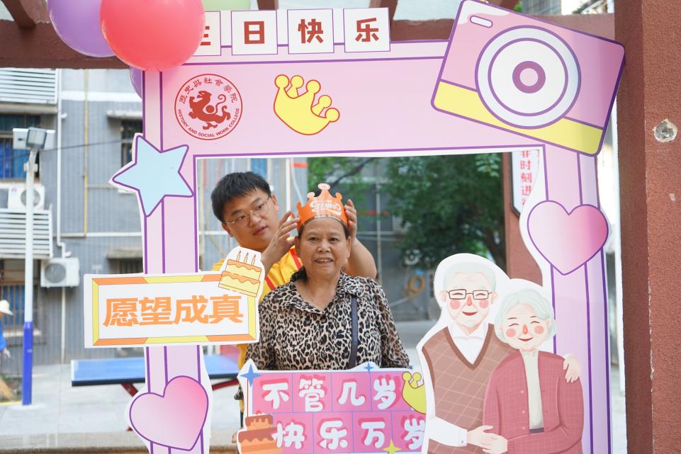 (团队成员为寿星奶奶佩戴生日帽 王仁杰摄)