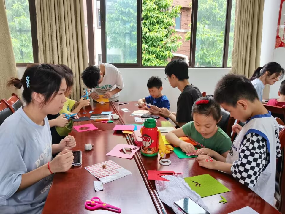 志愿者带领小朋友手工