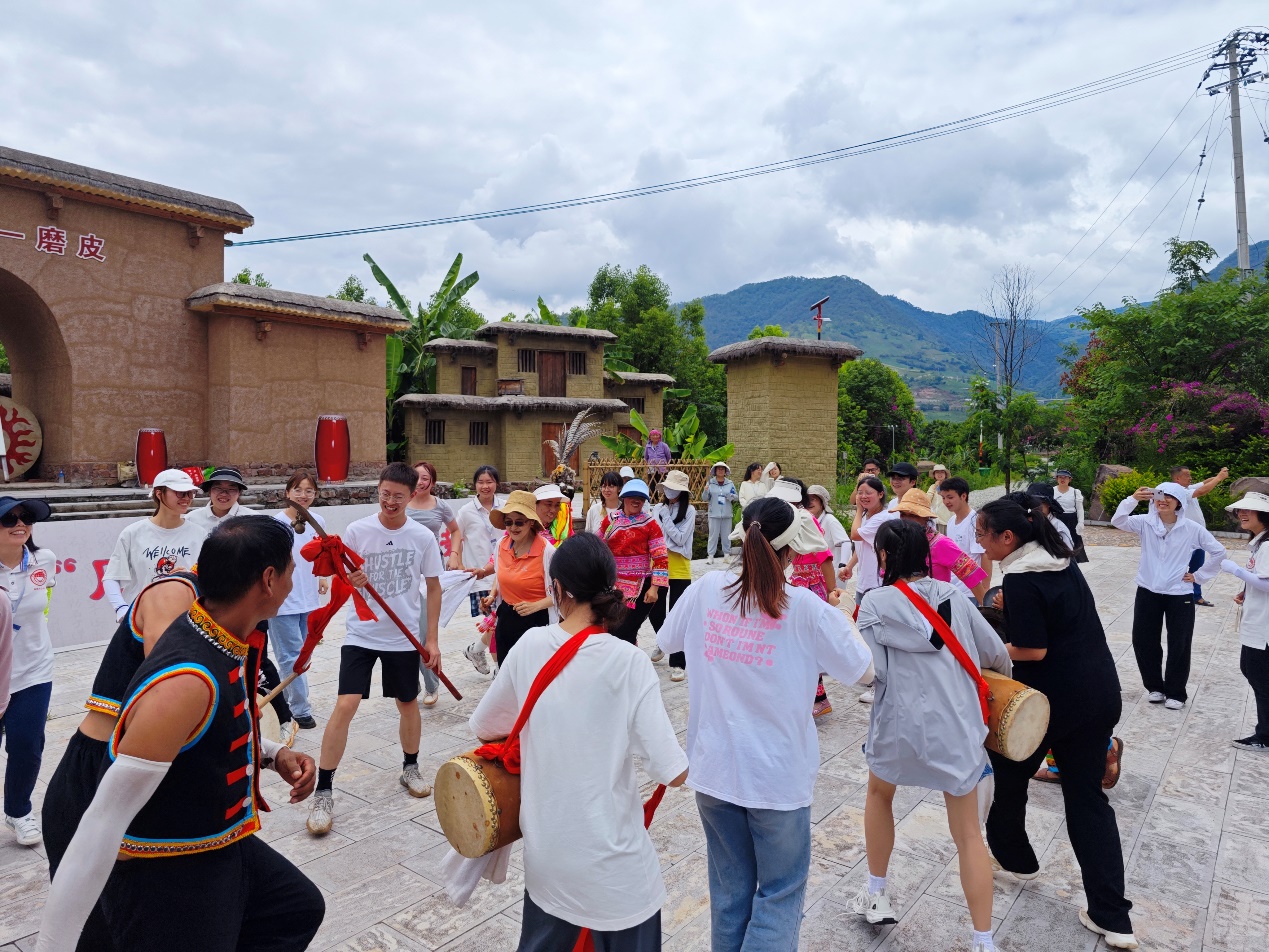 在品尝了村民的盛情款待的午餐后,村支书向实习队伍介绍了磨皮村的基本情况以及未来发展方向与前景,在“做精农业、做活文化、做强旅游”的总方针指引下,磨皮村正在逐步向“生态磨皮、康养磨皮、魅力磨皮”迈进。实习队伍欣赏了“彝”味十足的花鼓舞,参观了彝族文化传习馆,在这之中深感脱贫攻坚的不易。